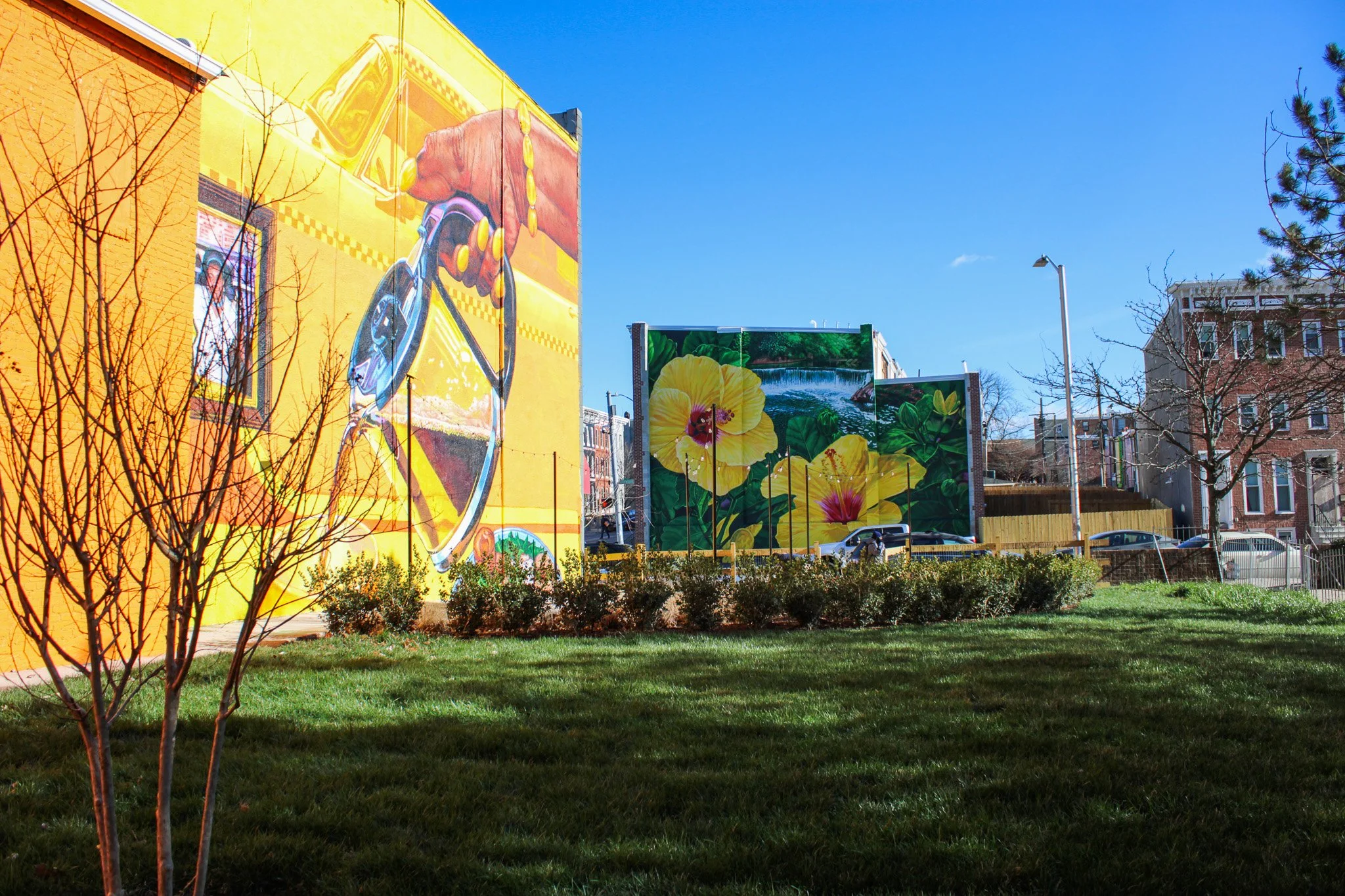 The Yellow Bowl Park Project, developed in partnership with Johnston Square and community leader Regina Hammond, is transforming two vacant lots into a welcoming community park on a post-demolition site. This gateway initiative will include grading, fresh sod, public art, and vibrant murals, creating an attractive introduction to the neighborhood. Designed as a space for gathering and connection, the park embodies the vision of a more connected Baltimore through green spaces, adding beauty, value, and pride to Johnston Square.